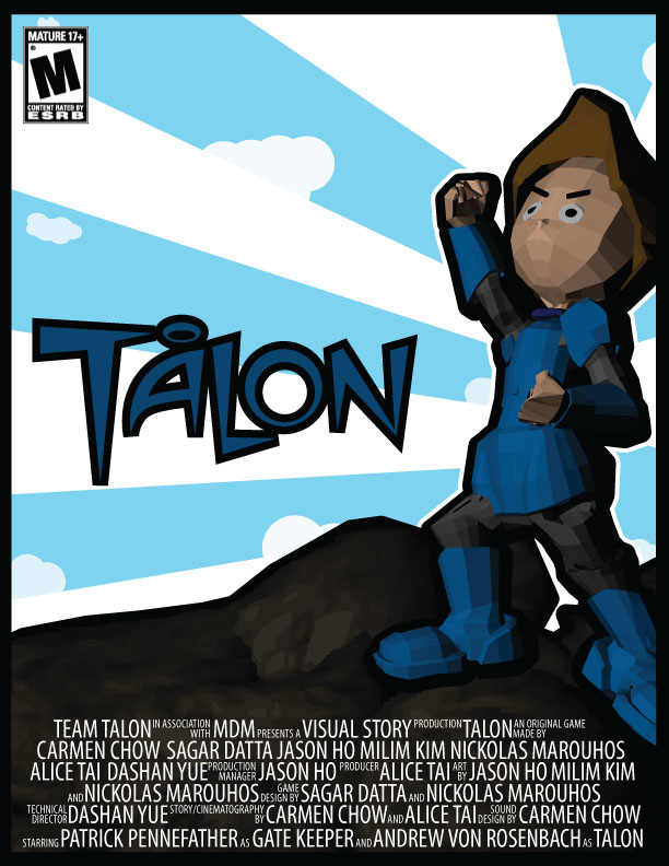 Talon was created for a course at the Centre for Digital Media; The Visual Story. The assignment required that we create a piece of interactive media that told a story of transition and change. This theme of transition is embodied in Talon in two ways; Talon’s death and resurrection and Talon’s discovery of his existence as a controlled character.